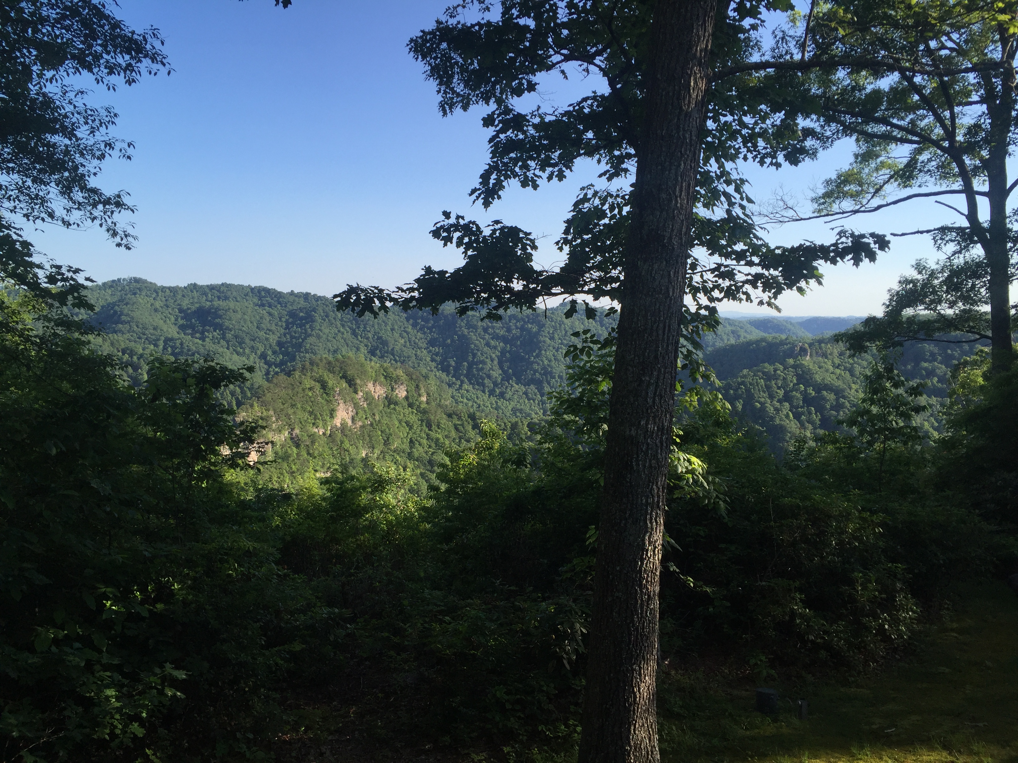 I should have known that our destination was an omen. I left the church in the morning and as I started off, I couldn't get my left foot clipped in the pedal. I circled back to camp and one of the other riders took a look and made a few adjustments to the pedals. I started off and got about 3 miles before our first small climb of the day. On the way up, with not much of a shoulder my left foot came off the pedal. This was a very uneasy feeling especially going up hill when having the pulling motion of both feet helps with the momentum of going up the hill. I made it down and to a gas station where the V&T could easily pick me up when everything went wrong. I started to stop and got my left foot out of the pedal, but couldn't get my right foot out. I tipped over to the right, got a small gash on my upper right side and put a small hole in my chamois. The van finally arrived and I rode with them to Breaks Interstate Park.